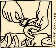 Das Fruchtfleisch kann nun nach Belieben und Verwendungszweck entweder würfelig geschnitten oder geraspelt werden. Mit dieser Tranchiermethode können Sie fast alle Kürbisse leicht und rasch verarbeiten.